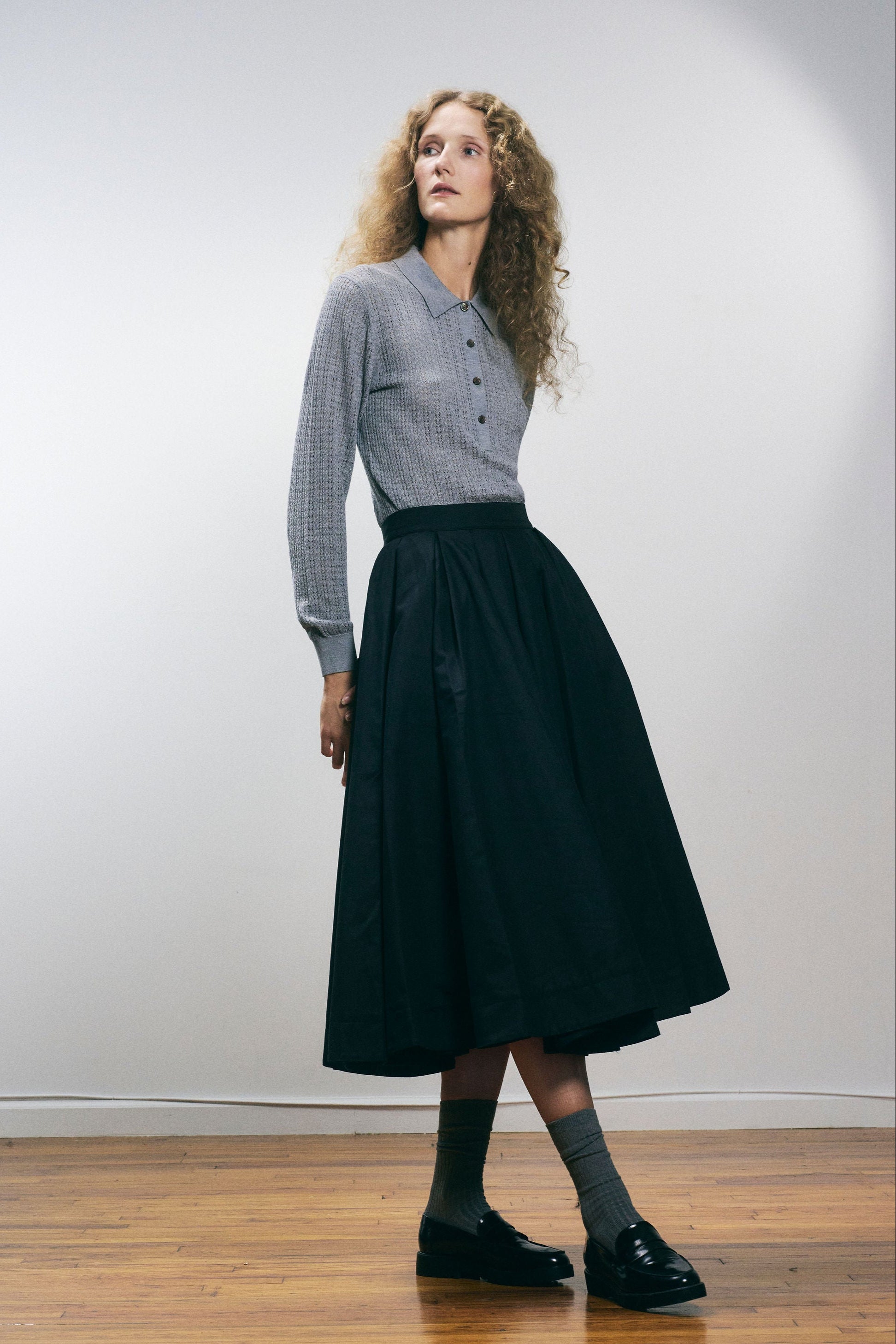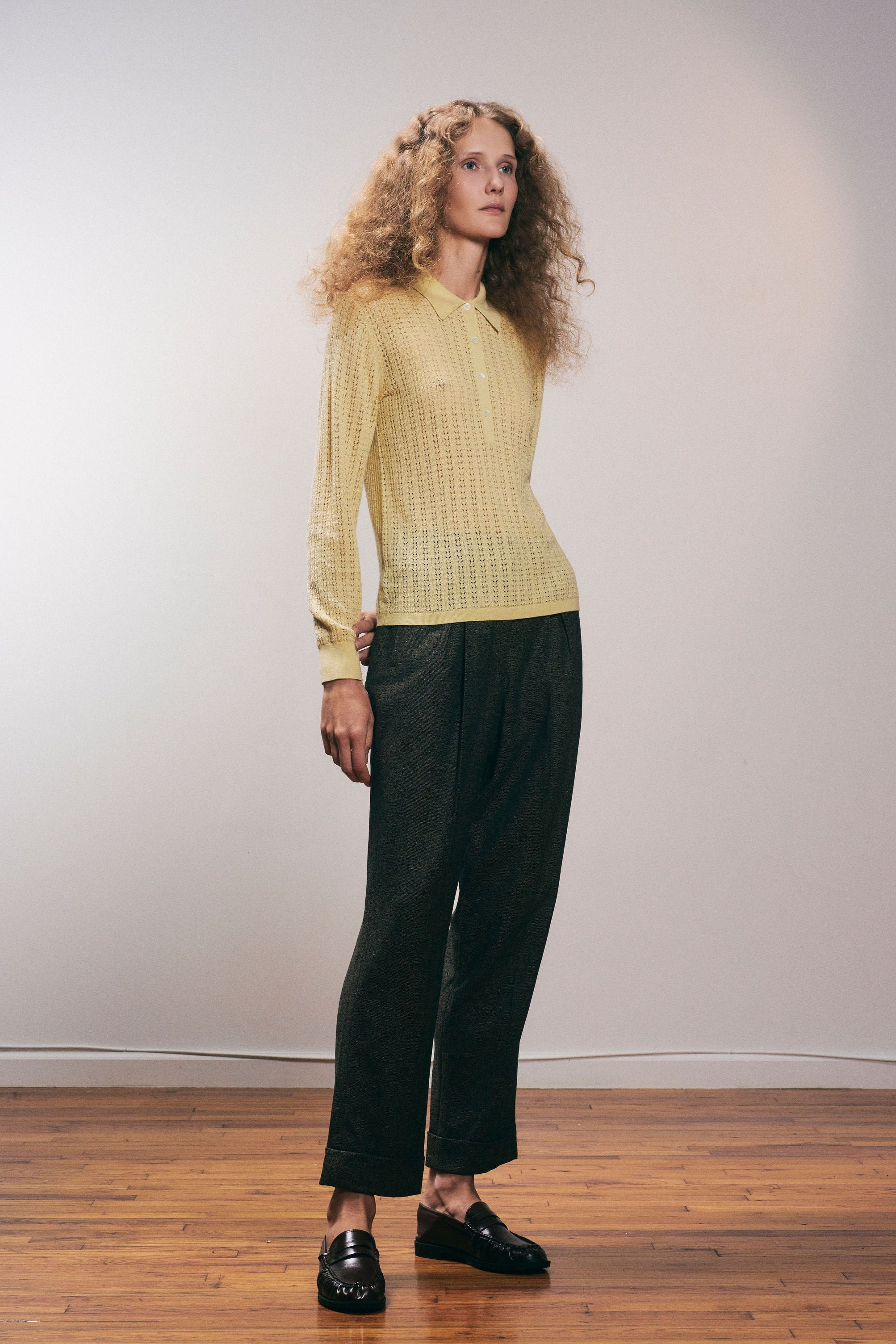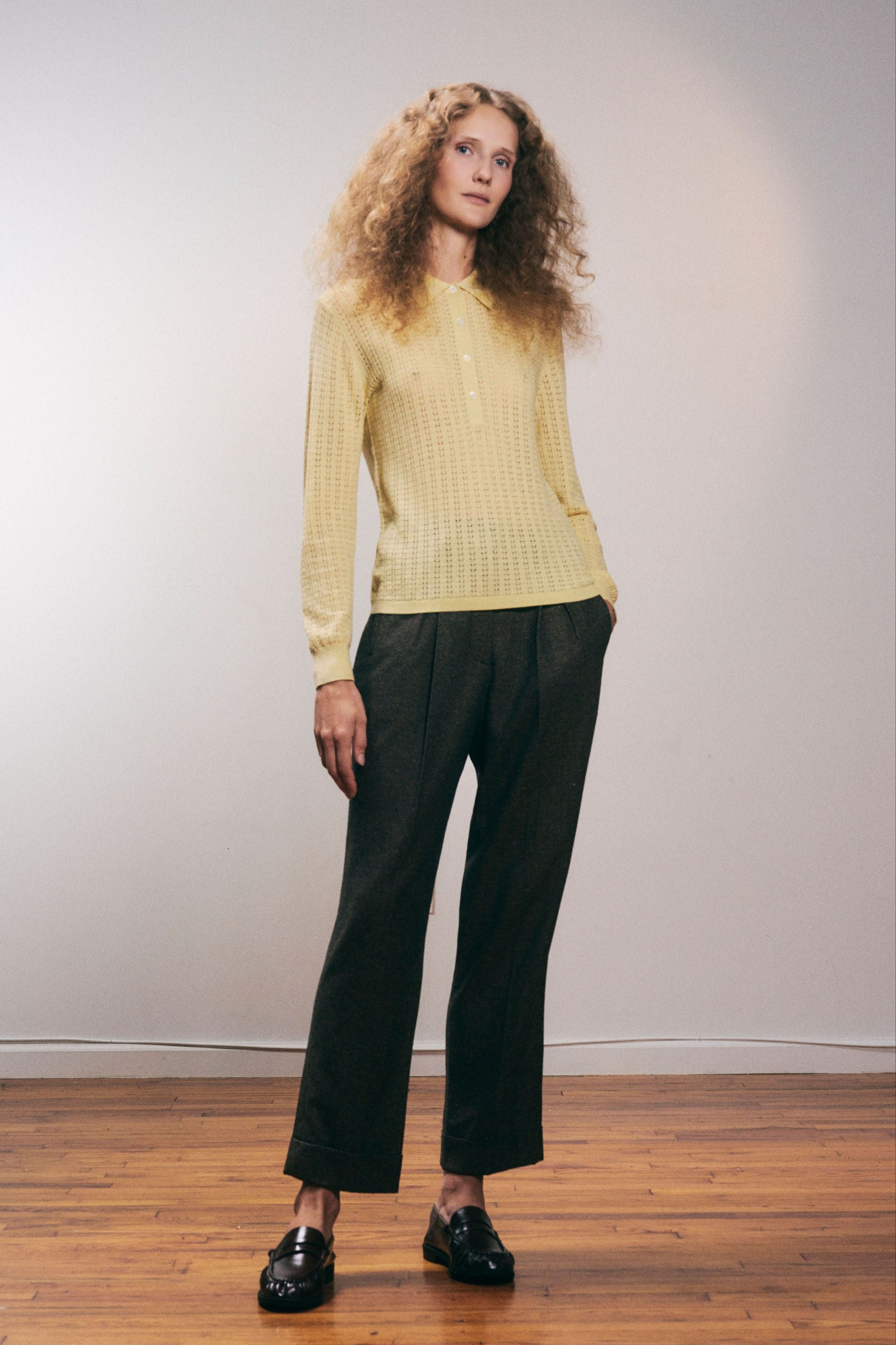 Designed in an intricate sheer openwork pointelle knit, the Dalia polo is a unique take on the classic silhouette. Made of a light Extrafine Merino wool and Silk blend, it is buttery soft and luxurious. It features subtle ribbing at the cuffs and a narrow ribbed hem. Perfectly balanced for an easy yet flattering fit.